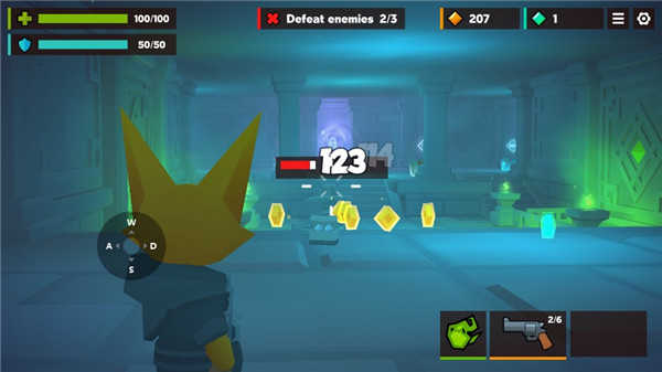 2、进入关卡后,瞄准敌人即可自动开火,清理地图内所有敌方单位后,激活传送门前往下一区域。
