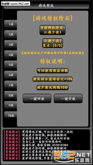 文字题材mud的江湖武侠游戏,玩家在游戏中将会感受到真正的江湖世界,体验全新的江湖游戏玩法,同时游戏的操作也是十分的简单,放置挂机的玩法,让你能够轻松的体验到这个热血的江湖世界。