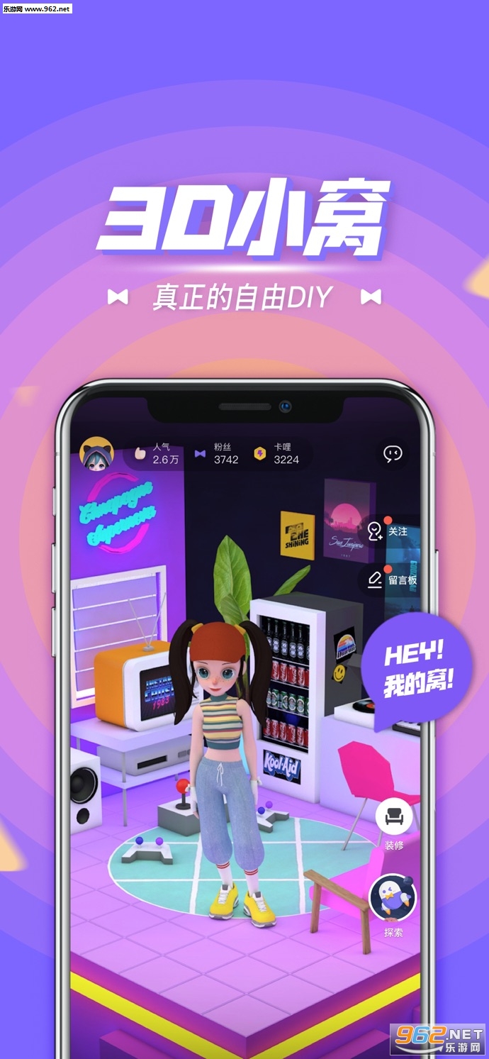 【互动玩法】访问好友的小窝,好友可以获得卡哩,让好友多多的来你的小窝,你就有好多好多的卡哩。拥有足够多的卡哩,你就可以买各种新衣服,新物件带回家,想怎么搭,就怎么搭!你还可以为好友打call,守护全世界最喜欢的TA。