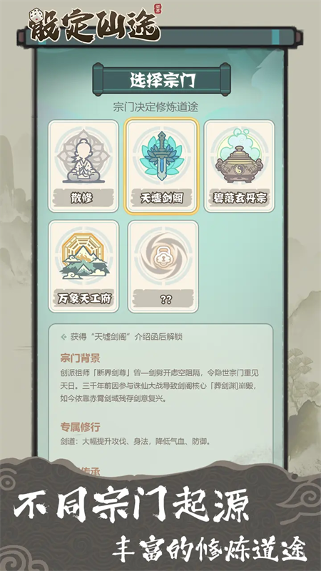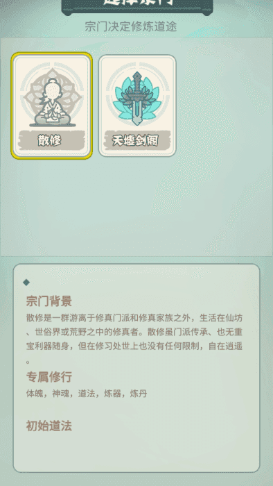2、玩家游戏开具可以选择门派,不同的门派有不同的加成。