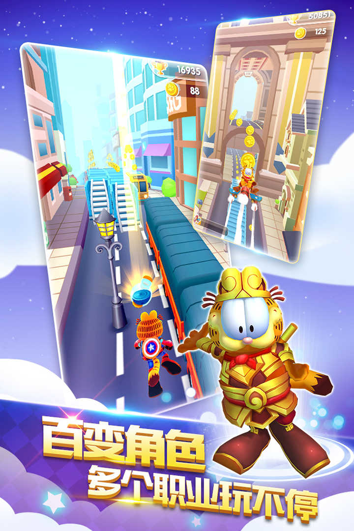 我的加菲猫破解版是一款趣味性十足的动作跑酷类手机游戏,游戏采用3D引擎打造,为玩家们呈现出了更具有代入感的画面场景,游戏中,玩家将跟随耍贱卖萌的加菲猫一起跑酷,凭借简单的操作以及伙伴间合理的搭配来完成更多的挑战,游戏现已破解,可让玩家拥有无限钻石和金币解锁更多游戏内容。