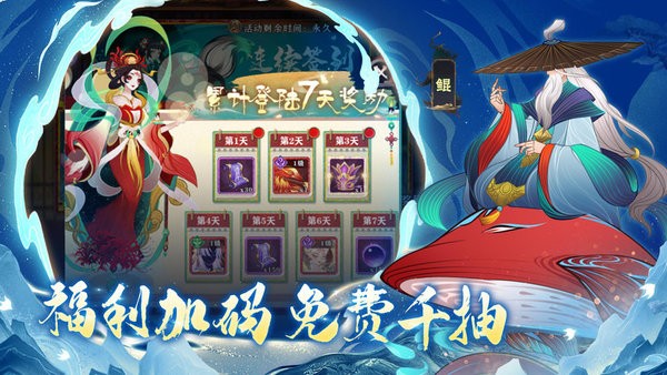 2、7天签到:活动期间内签到可领神秘聚灵符合计530抽,限定聚灵符150抽。