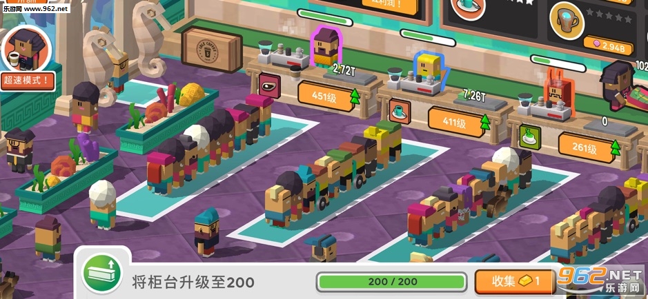2、美式可爱画风的场景打造,打造最强大的咖啡王国吧,建造城市最大的咖啡店;