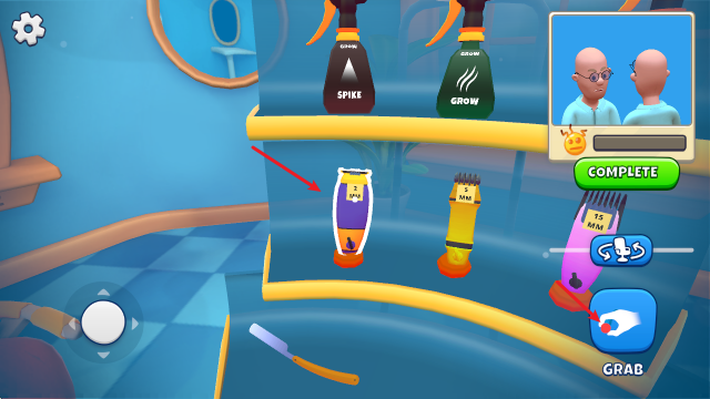 1、进入游戏后,使用左侧虚拟摇杆移动角色,右侧按钮调整理发椅角度。靠近工具架,点击手形图标即可拾取所需工具。