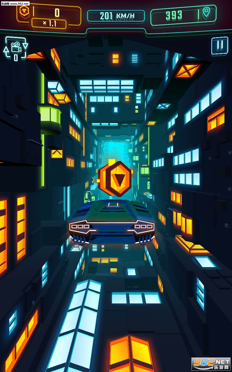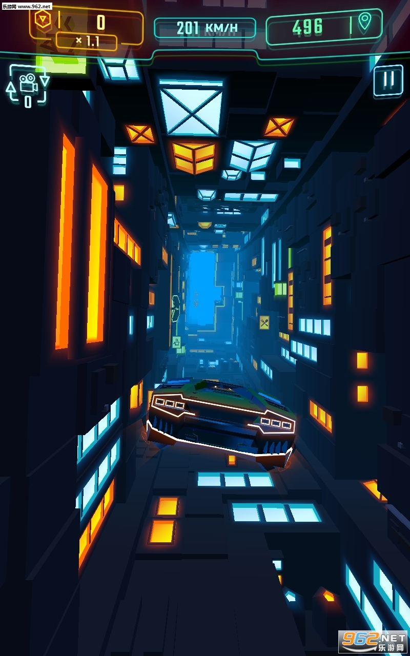 3、配合简单流畅的操控,玩家将可以在霓虹赛道上轻松操控。
