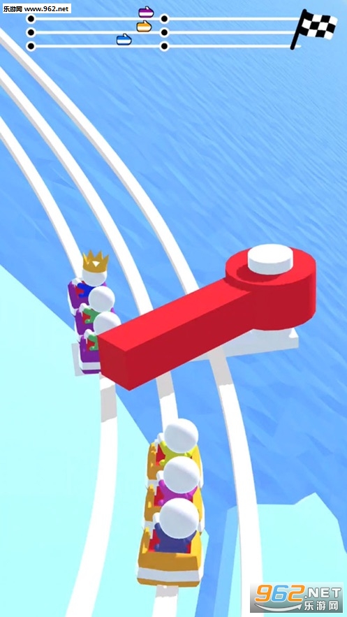 玩家在游戏中,需要控制粘土人,坐在过山车上,通过低头、减速等方式,顺利的通过过山车轨道上的机关,保证自身的加速度够快,击败其他玩家,解锁更多的过山车皮肤。