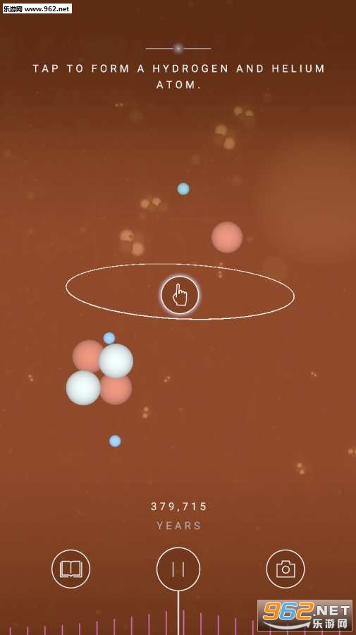 2、在这个真空的宇宙中,你将创建第一个粒子与原子,见证它们不断发展的过程;