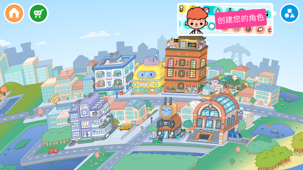 TOCA LIFE WORLD中仅有两个可选择的新地点:美味的Ro-Bo Café紧跟时尚潮流的设计商店,你可以在店内挑选物品装饰自己的房子。