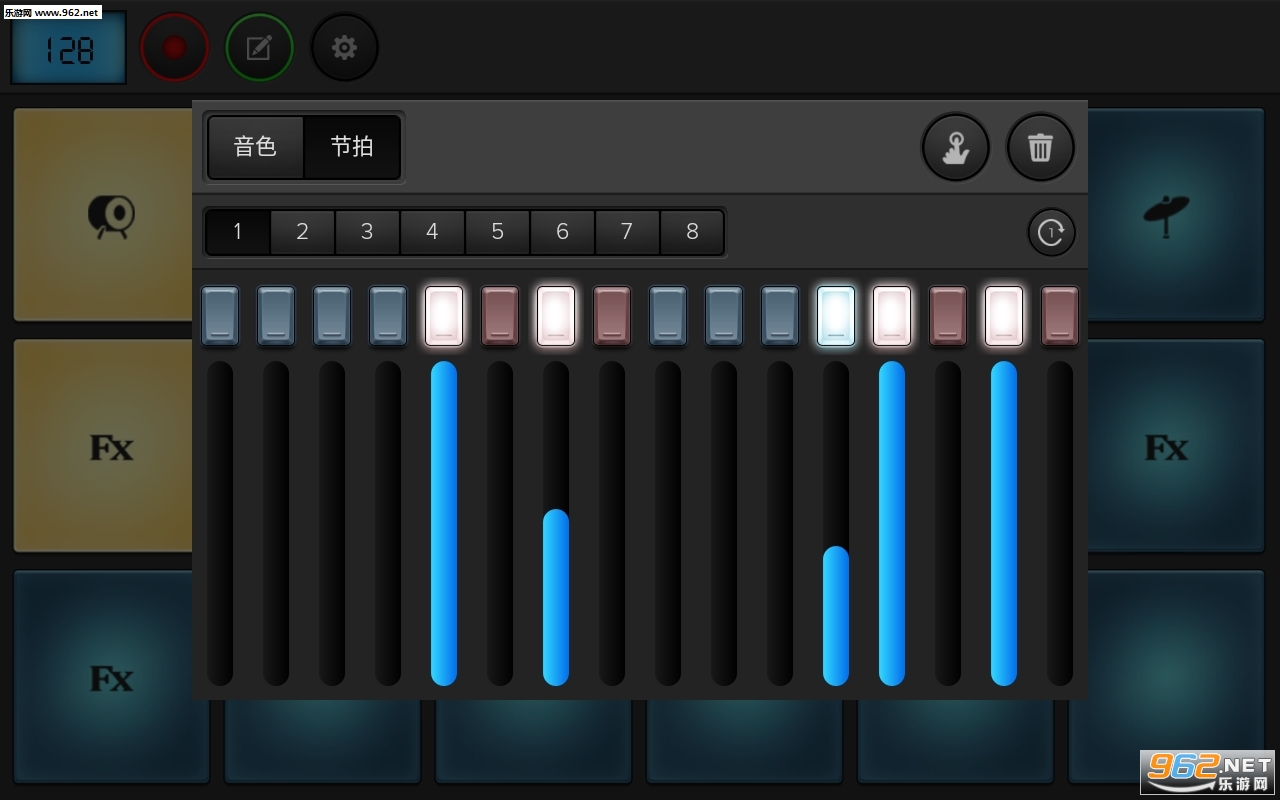 4、演奏也很灵活,而且音色也不错,趣味性相当的强,界面没有任何的广告,支持节拍的循环以及频闪灯。