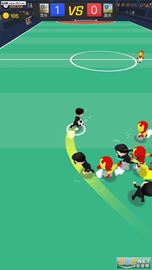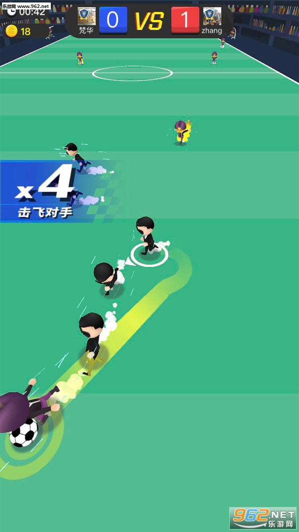 2、玩家在游戏中可以随意的滑动屏幕控制自己的角色,将面前的对手全部撞开,将球带到指定位置。