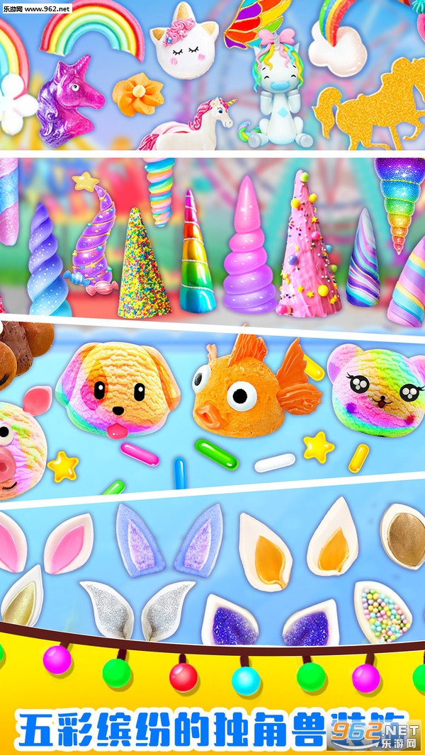 1、为所有年龄的女孩和男孩准备的时尚独角兽食品主题游戏。
