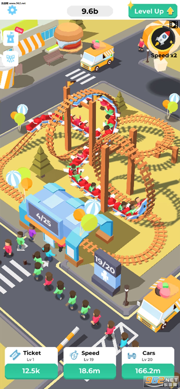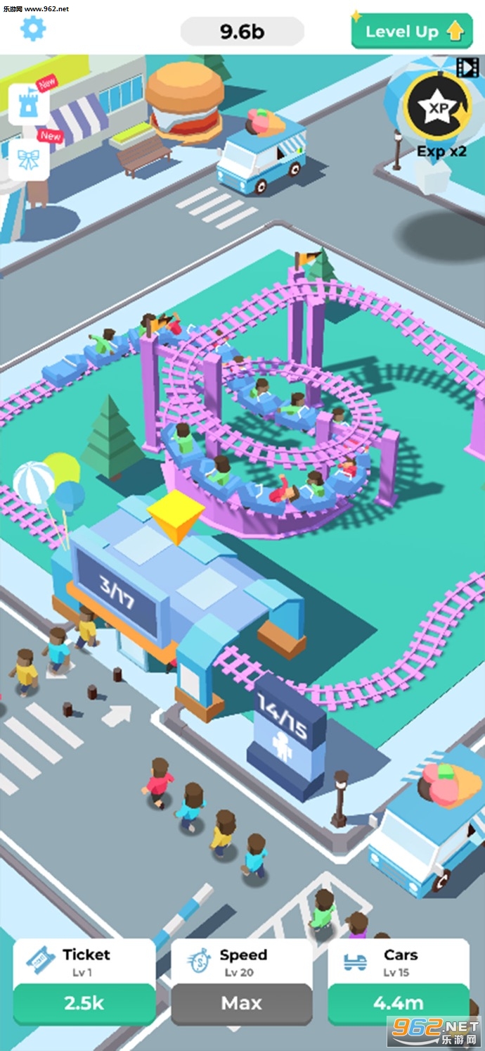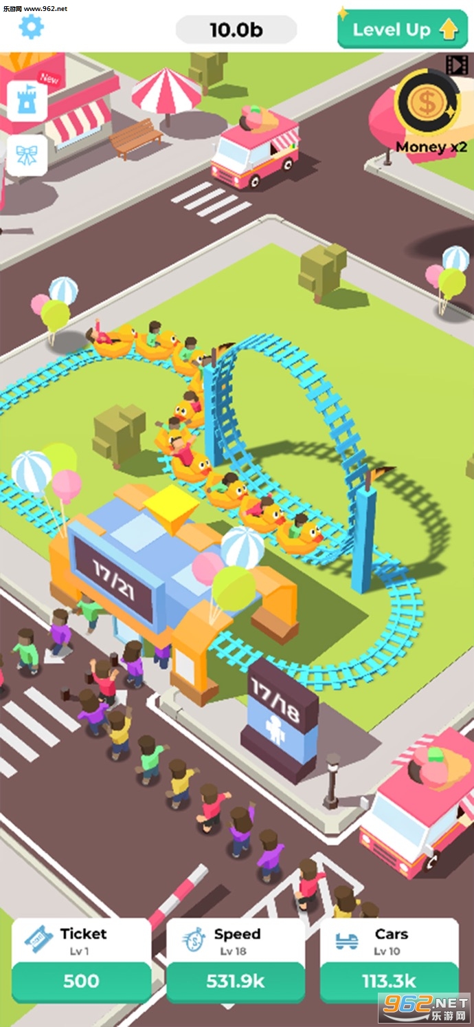 3、升级过山车,解锁更多轨道,成为最大的游乐园。