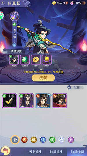 5、前期如果培养错了仙灵,可以去归真坛免费洗髓,系统将返还培养消耗的资源