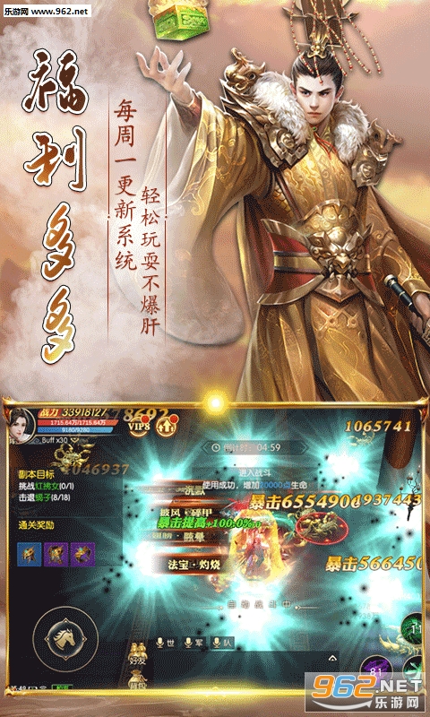 2. 上线就送满V,绑元*68888,金币*200W,更有高达30倍的投资返还和月卡返还,各种福利礼包低至1元,返利比高达270倍。
