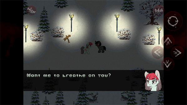 恐怖小马是一款恐怖冒险游戏,由同名端游移植而来。游戏以经典动画小马宝莉为题材,搭配上阴森恐怖的画面,为玩家带来截然不同的游戏体验。游戏内以小马宝莉为主角,玩家将在各个场景中探索并利用线索解开谜题,尝试安全逃脱。