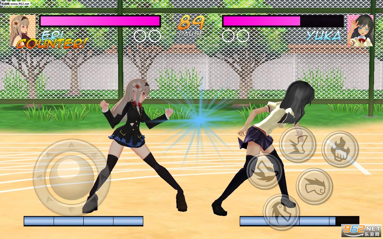 1、游戏中你可以选择高校女学生进行格斗对战,每个角色的技能和招式都各不相同;