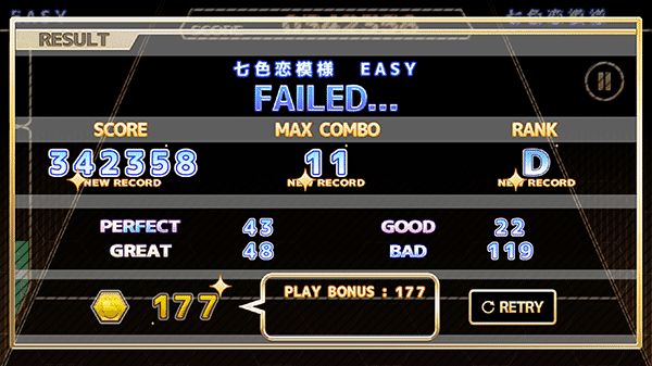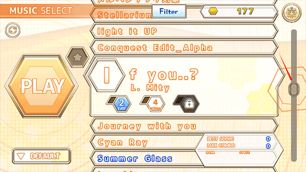 5、在一开始如果是刚接触音游的话我们可以从一些难度简单节奏也不快的歌曲开始。