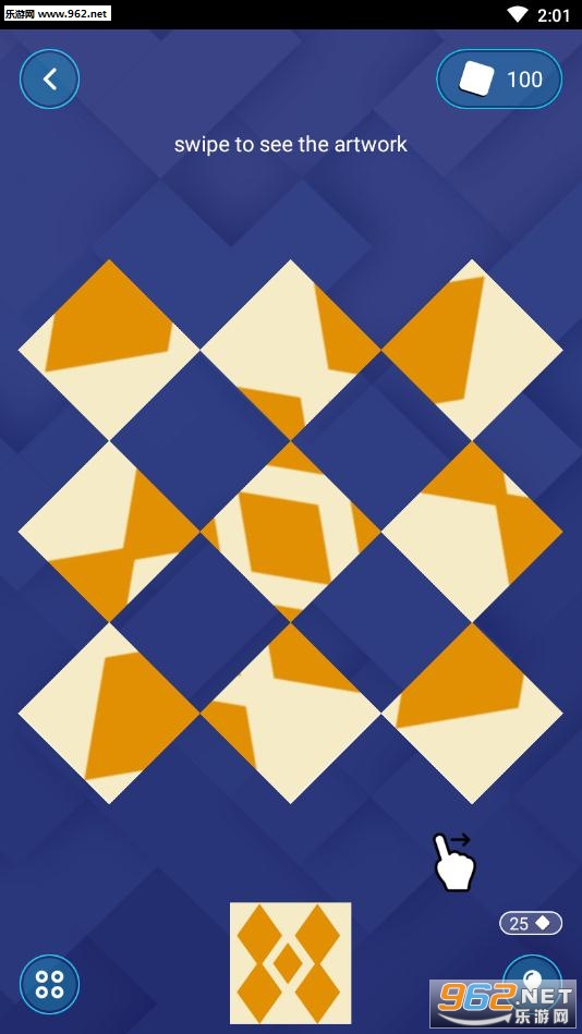 游戏目标是旋转瓷砖并制作给定的艺术品。点击钻石形状的碎片,使它们在自己的轴上单独旋转,制作正确的位置,然后将碎片转换为最终扭曲的艺术品。