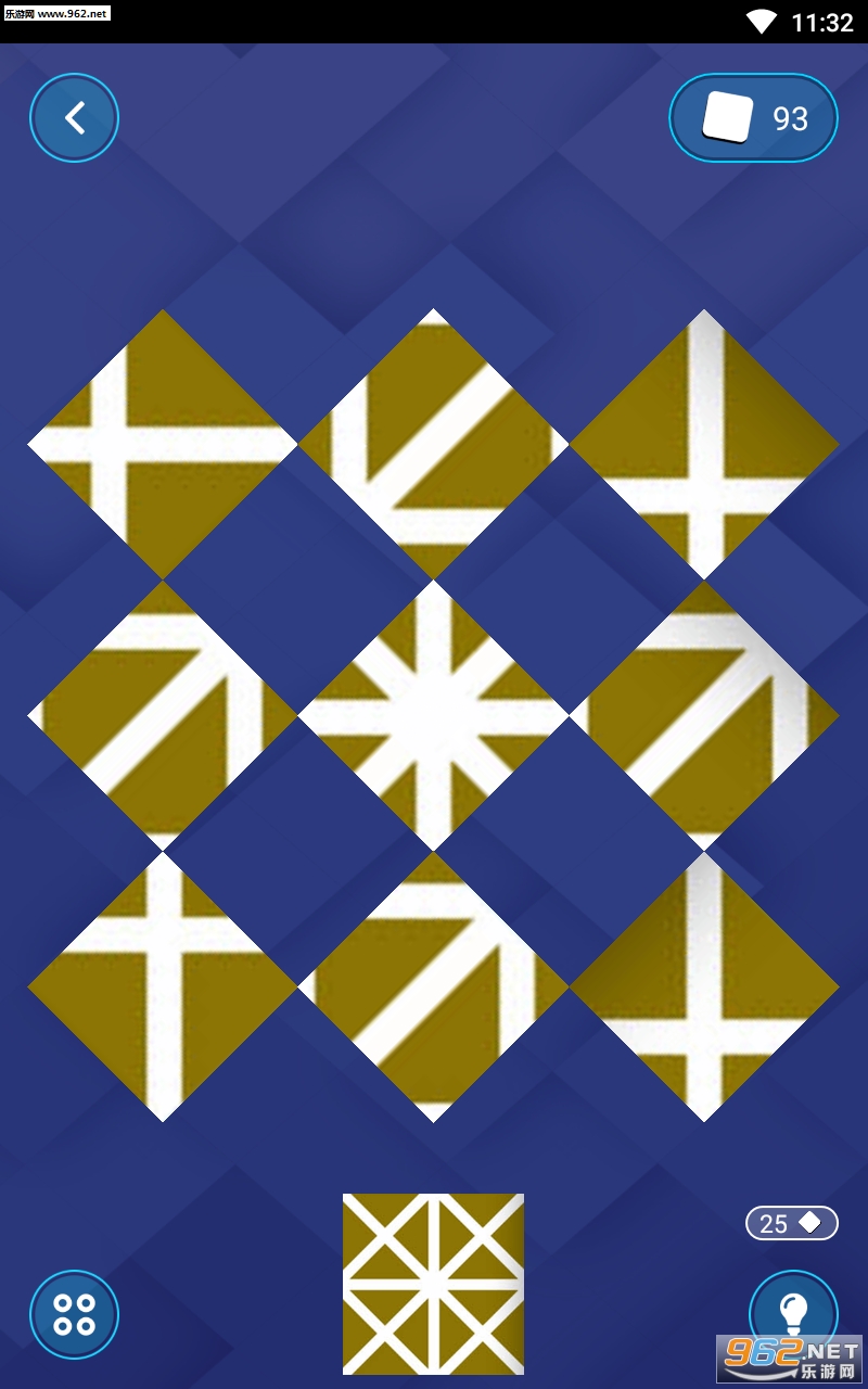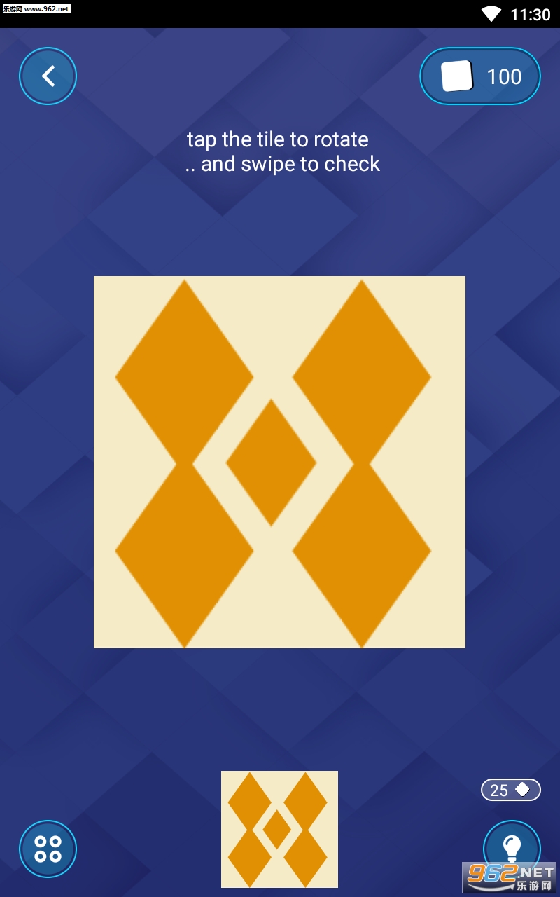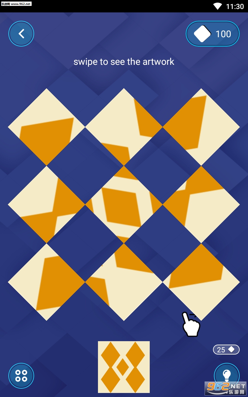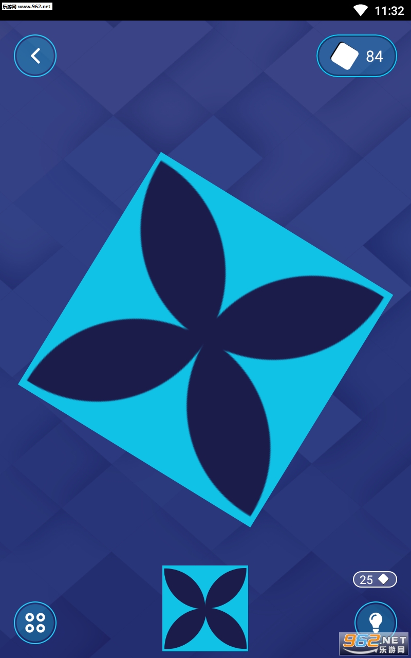 游戏目标是旋转瓷砖并制作给定的艺术品。点击钻石形状的碎片,使它们在自己的轴上单独旋转,制作正确的位置,然后将碎片转换为最终扭曲的艺术品。