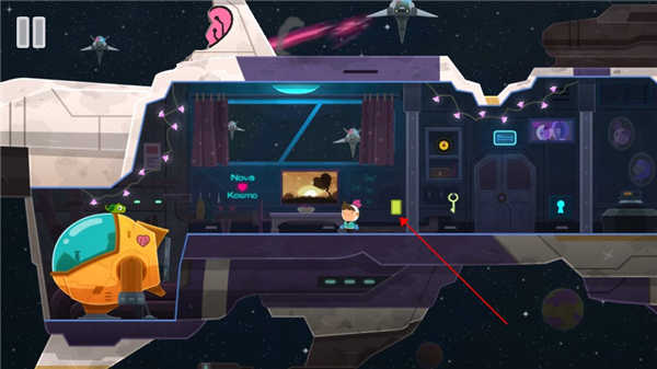 3、游戏内容包括解决一些时空难题、寻找隐秘的可用物品、推箱子小玩法、与外星人周旋等等。整体采用了略带童趣的卡通风格,有些关卡还需要利用一些匪夷所思的方法来解决。