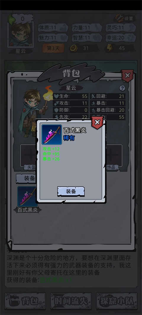 异界深渊模拟器是一款冒险解密的探索游戏,玩家们在游戏中以文字的模式来进行地下的游戏的探索,一切秘密都隐藏在深渊当中,吸取上一世的经验教训,前往深渊探索,去打出不一样的结局,多重结局等待玩家来解锁,需要玩家对装备技能进行合理搭配组合。