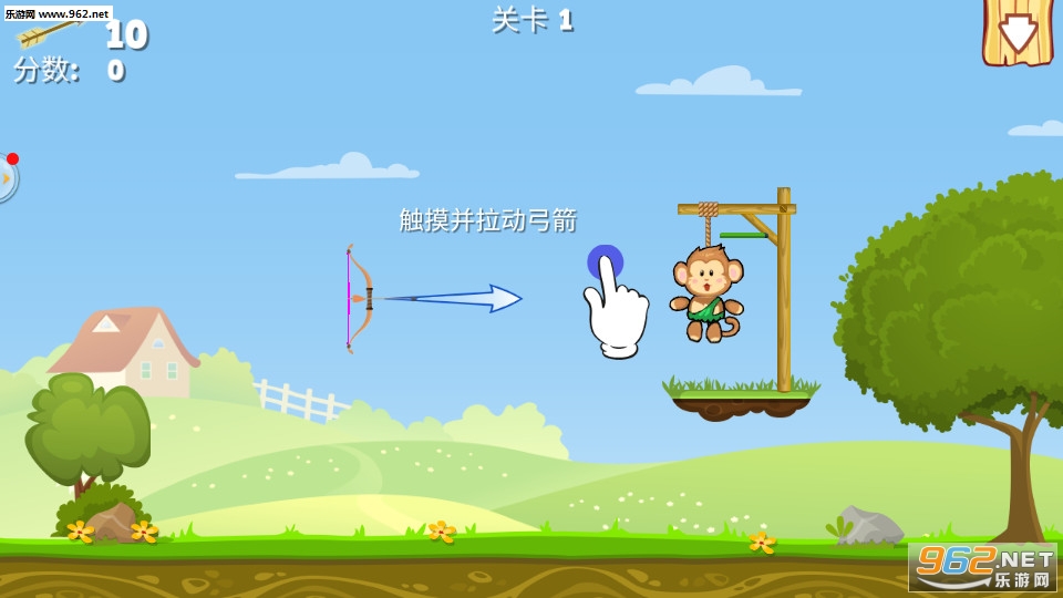戴上你的弓箭开启冒险之旅,每一个场景中会随机的出现多只猴子,瞄准射击它们。