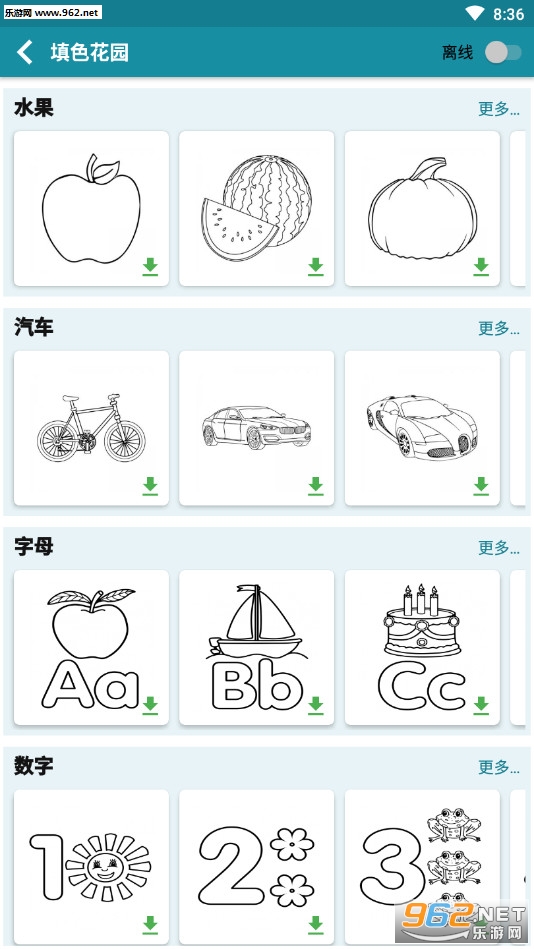 《填色花园安卓版》是一款画面清新的黑白间涂色游戏,游戏中有着人物、动物、花朵、交通工具等众多不同的黑白简画,这些画都是由各种不同的细小部分组成,玩家的任务就是需要将这些细小部分涂色对于的颜色,让这些画重放光彩。