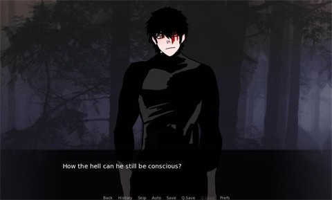 玩的时候,第一个选「环顾四周」,接着后面出现「躲藏」「转身」「逃跑」,选「躲藏」,就会触发结局1,角色被偏执的人抓住。