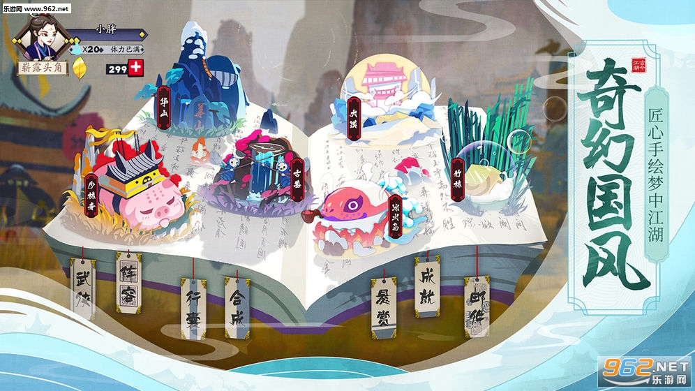 以国风水彩手绘为主,更融合了泥人等传统文化元素,打造了一个极具幻想的武侠世界。