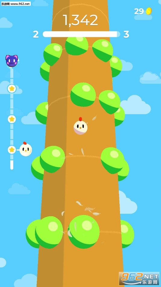 《欢乐层层跳官方版》是一款画面清新的向上跳跃闯关休闲手游,游戏中玩家将控制一只可爱的小鸡不断的跳跃冒险,注意每次跳跃后让小鸡能够落在圆球上面再次弹起,有着众多的关卡场景可以挑战,如果掉下去挑战失败。
