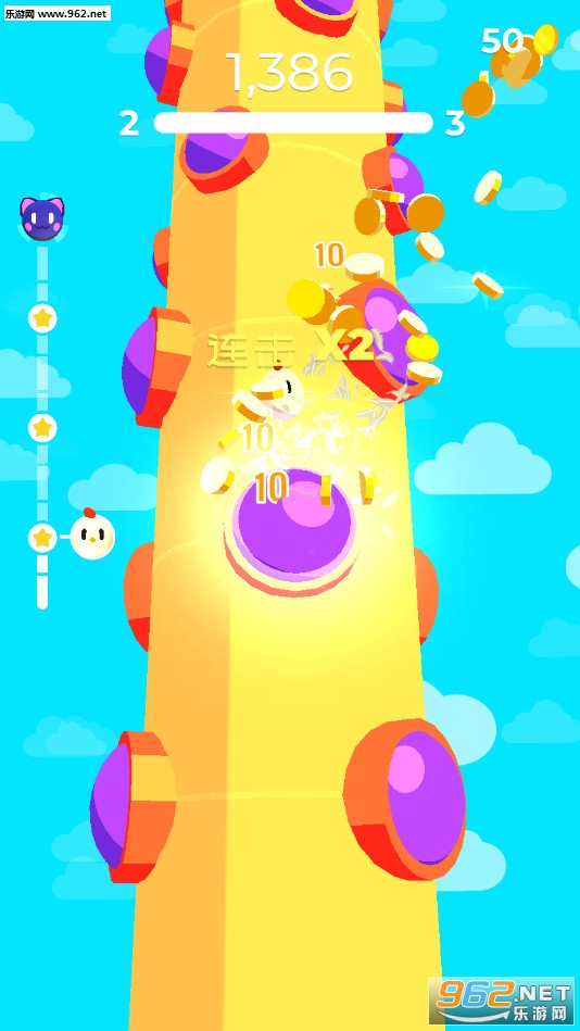 1、简单的游戏操作,激情的挑战,不断的向上,背景画面色彩非常的鲜明;