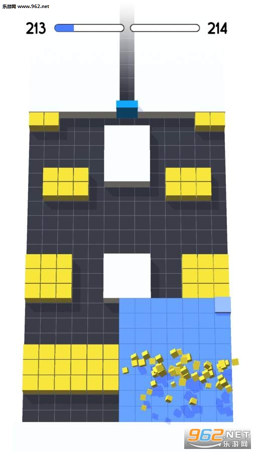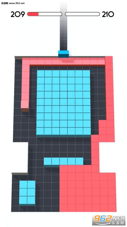 2、玩家在游戏中需要控制你的方块,躲避障碍,一步步用色彩将地图填充满进行闯关;