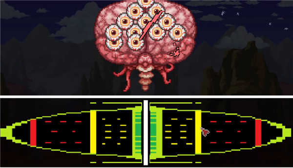 3、有趣的是,你可以通过砸掉血腥心脏同时召唤两个克苏鲁之脑,它们似乎共享飞眼怪,并会同时进入第二阶段。