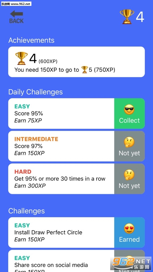 -每天的挑战,会带给你很多的精喜,包括一些解锁道具、排行榜、商店等等。