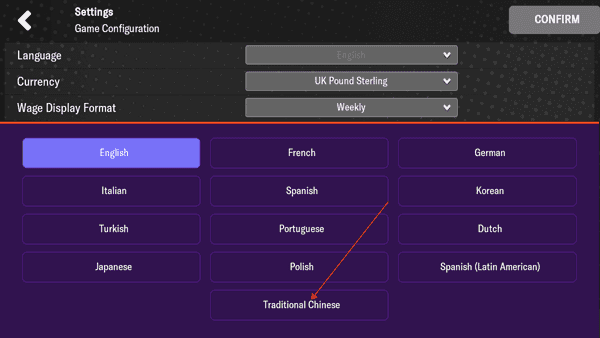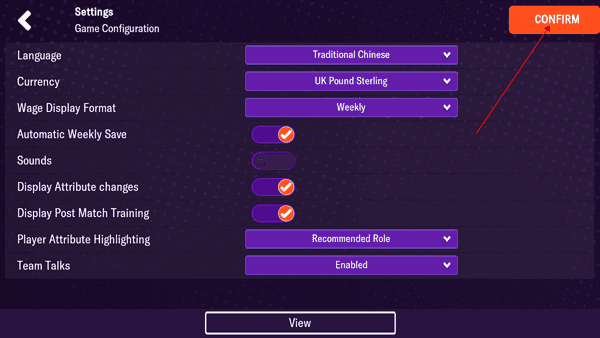 4、最后不要忘了点击右上角的/confirm/i保存设置,完成后游戏就切换为中文了。