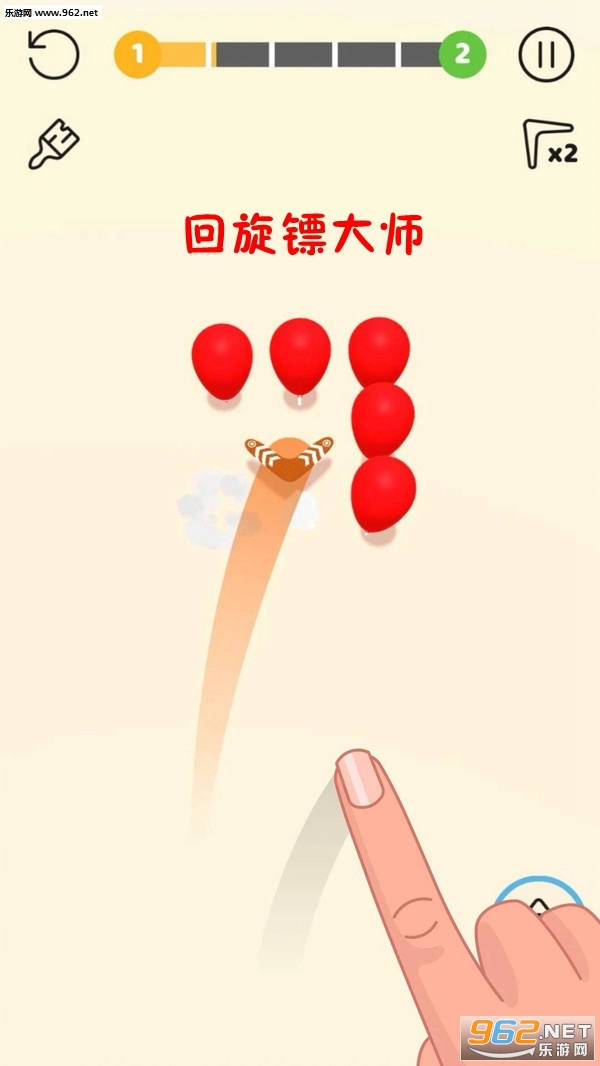 回旋镖大师是一款单手都能玩的休闲趣味小游戏,玩家需要发射回旋镖,击爆画面上的所有气球即过关,简约的画面配上耐玩的操作,一定会让你爱不释手。游戏拥有上百个关卡,难度也会逐渐上升,感兴趣的小伙伴不妨来挑战一下哦!