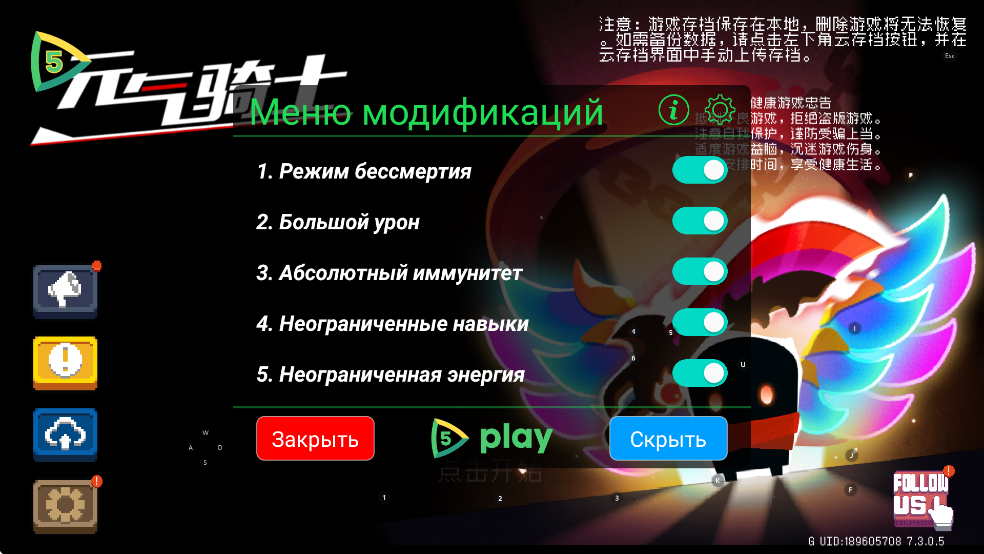 经典的像素roguelike游戏,玩家可以解锁各种角色去战斗,小编带来的是元气骑士3.1.1破解版,内置修改器,可以获得无限钻石金币,无限技能,无限材料等等,有需要的朋友可以下载试试。