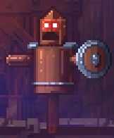 白袍是一个法师选手,可以发射出魔法弹。并且,魔法弹可以无视地形的限制来攻击玩家。然而,这并没有什么卵用。谁让白袍的魔法弹攻击力低下,本身又是个身娇体弱易推到的笑脆皮呢?