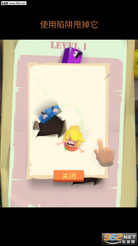 游戏玩法简单,颇有亮点之处,我们能够在很短的时间内就掌握游戏的核心玩法。在类似于纸片的场景内,从屏幕上方涌入的怪物会对你进行追杀围捕。一旦被它们抓住,便意味着游戏失败,你需要利用地图里出现的各类陷阱、机关以及道具将它们悉数杀尽,同时自己操控的角色也需要躲避诸多机关陷阱,如此才能获得胜利。在玩法的设定上,该作采用了简单的滑动控制角色移动的形式,单指就可以完成各种操作,符合移动设备的特点。