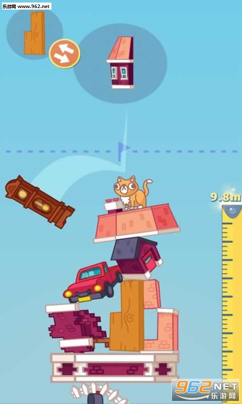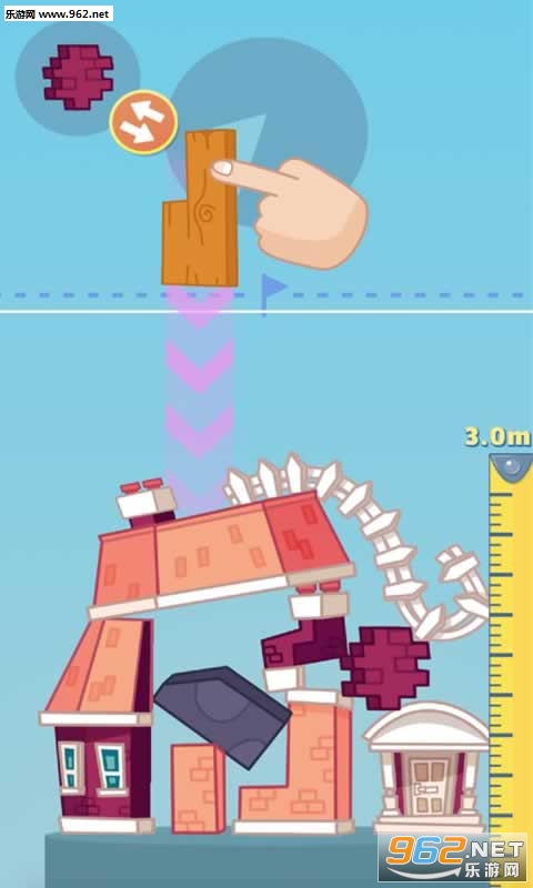 如果把屋顶和烟囱放在最下面,把大门放在最上面的话,这房子会不会显得很奇怪呢?在游戏中,你就可以将这些部件随意摆放,你的任务只有一个,那就是把房子叠的越高越好。面对这样的挑战,你能坚持多久呢?