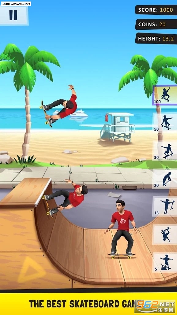 一款非常有趣的休闲滑板游戏,游戏的玩法简单有趣,是时候展示你高超的滑板技术了,游戏中还有着丰富的滑板它们的参数也有所不同,游戏的操作简单容易上手,推荐给喜欢休闲游戏的玩家。