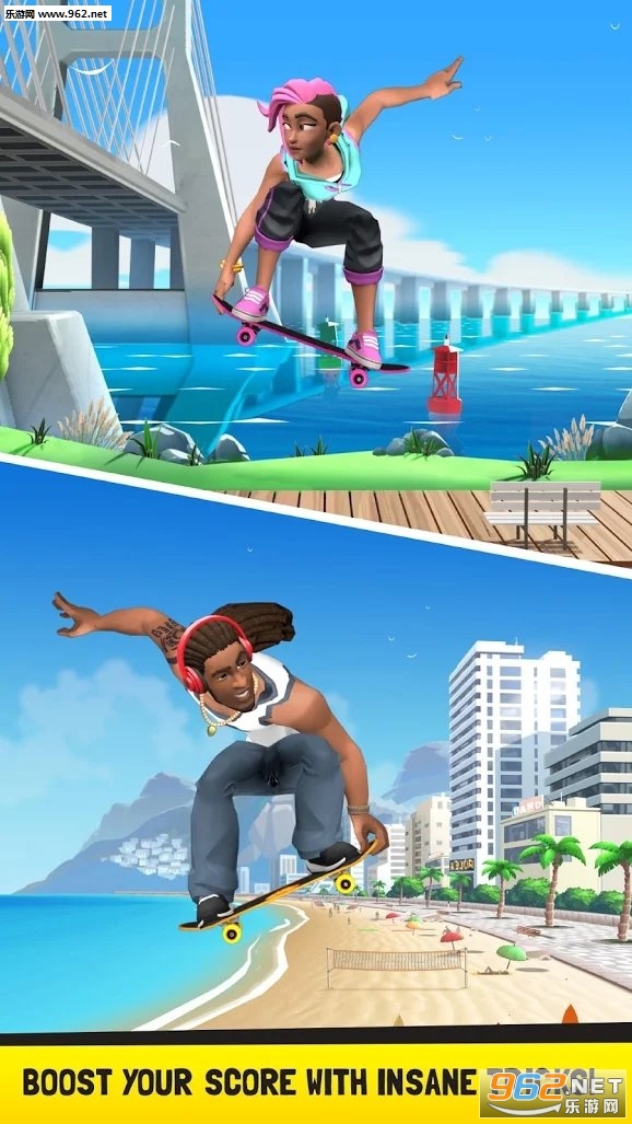 在最令人惊叹的环境中环游世界,让您的Skateboarder打印遍布全球!做惊人的技巧 - 鼻子抓斗,火箭架,前线架 - 击败最高分并向世界展示你的疯狂技能!
