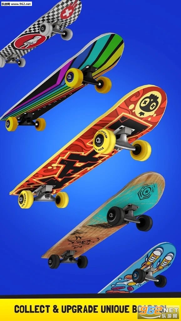 从众多可能性中挑选您最喜爱的电路板!确保你滑冰风格!解锁板的升级,以确保您的分数最大化!