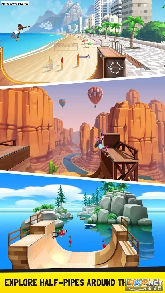 环游世界,选择您最喜欢的地点去滑板!从迈阿密海滩到贝加尔湖,您可以享受各种各样的坡道!