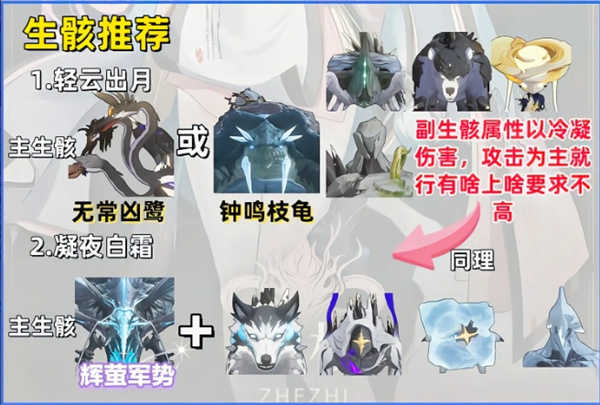轻云出月(主生骸以三头和钟鸣之龟就行,副生骸用套装的且属性为冷凝伤害和攻击就行符合就可以上)