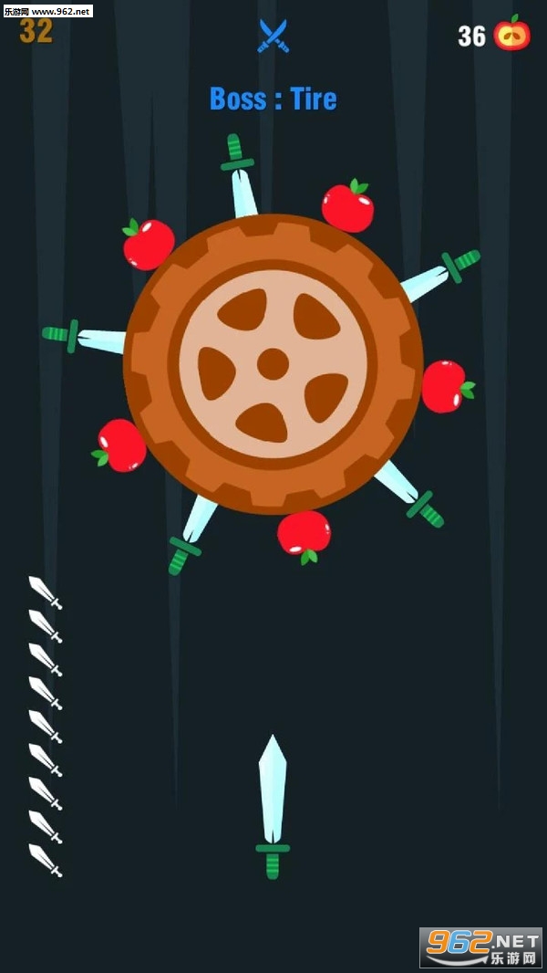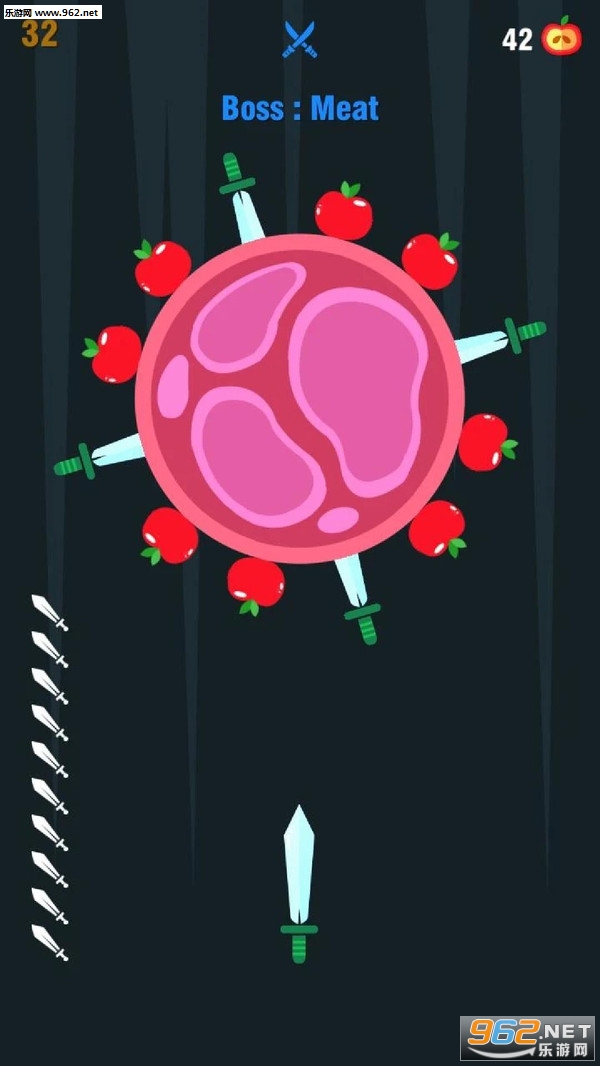 3、游戏中有一些BOSS关卡,这些关卡中会有番茄在靶桩上,你不能用飞刀射到番茄,甚至要插在2个番茄中间。