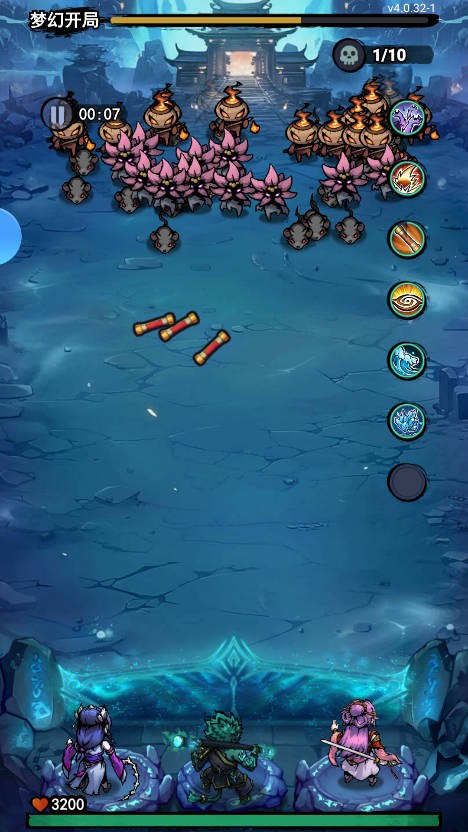 2、弓箭手关卡未解锁高级技能情况下精选技能灭魂+冰坠+土龙+火眼金睛;