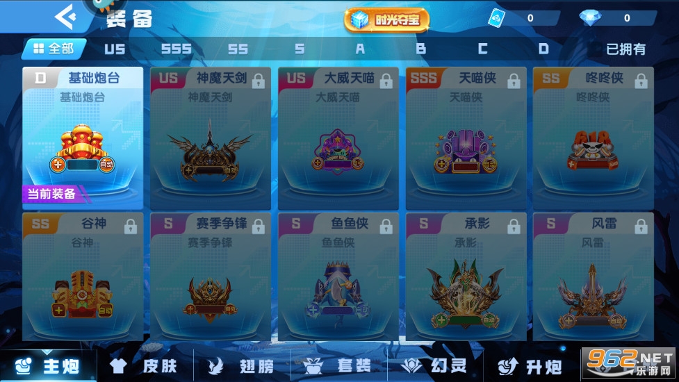 2、炮台切换:不同的炮台有不同的特性及技能。可在捕鱼房间中,点击“炮台”进入“更换炮台”系统即可预览所有炮台的特殊属性,根据捕鱼场次需求更换炮台。