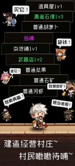 勇者是村长大人最新版是放置冒险经营类的趣味养成游戏。你将会拥有一个等待开发的村庄,先从一家武器店开始,之后不断扩大规模建筑,建造各种商铺,不断升级,一点一点扩大自己的村庄,逐步成为勇者的梦幻庄园。