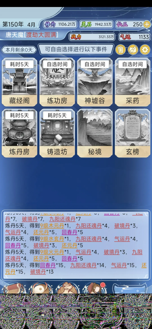 6、停滞期:有几个段位升的慢,就肝修看广告补充,缺破镜丹就肝炼丹(一次只做一件事,分散效果反而不好)